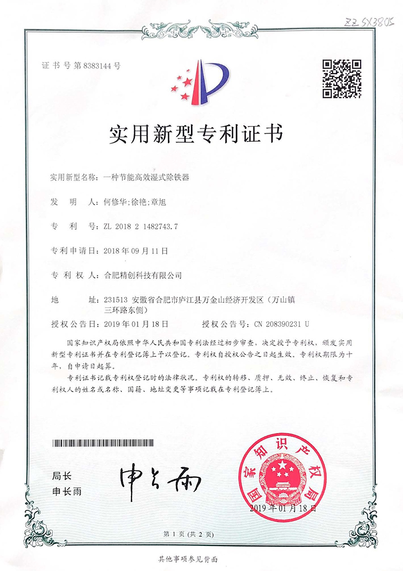 (2019實用新型)一種節能高效濕式除鐵器